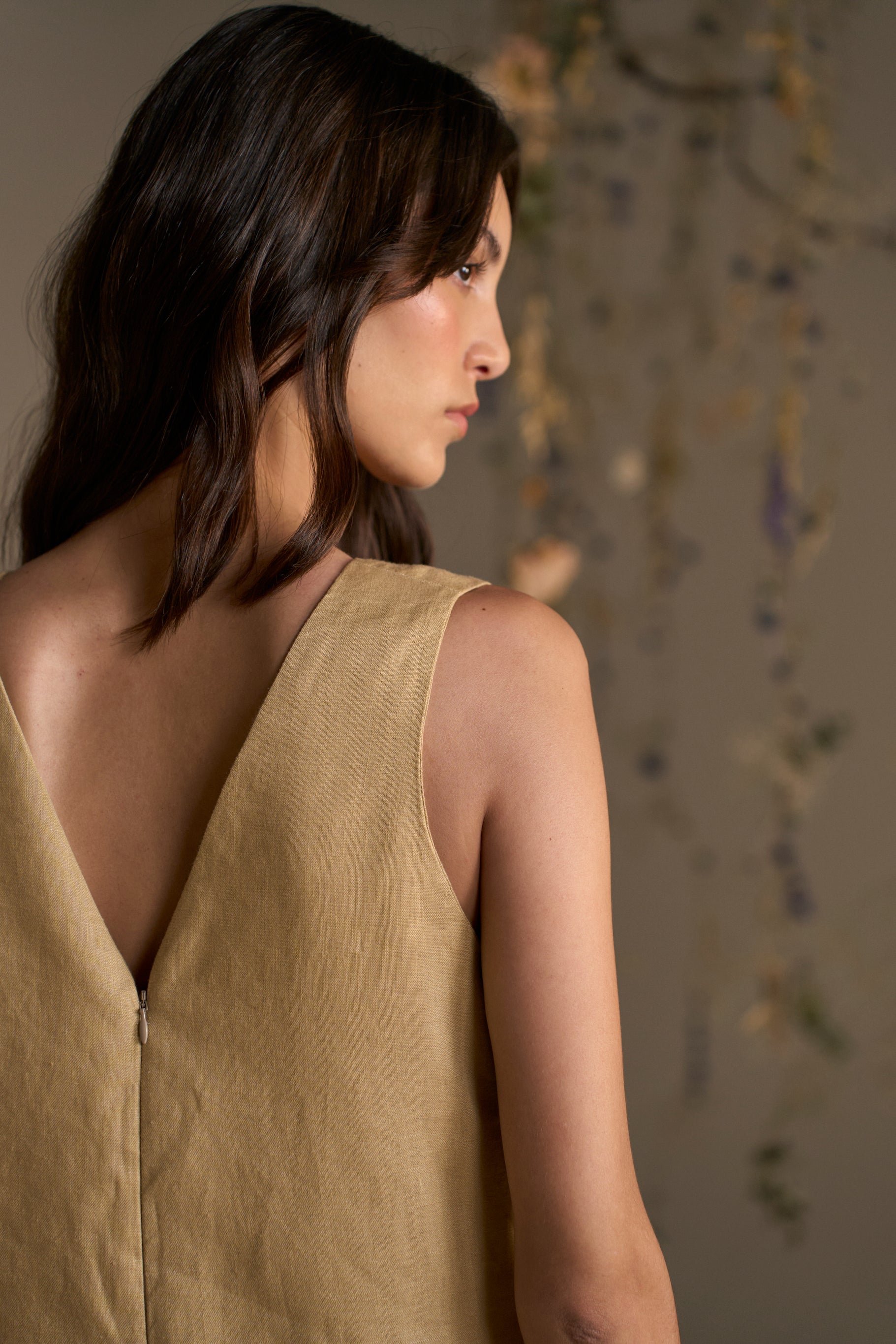 Cintas de seda tejidas artesanalmente, terminadas en flecos largos de seda que acompañan el movimiento, con presencia y fluidez.